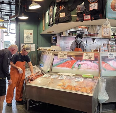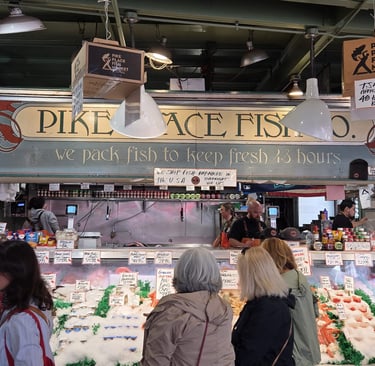 I'll start with the FISH! Philosophy Play. Standing in Pike Place, it was impossible not to feel it. The fishmongers weren’t just selling fish; they were performing, laughing, improvising with each other and with the crowd. Their work had all the seriousness of fresh produce and customer service, yet it was infused with fun and creativity. One child shouted “throw the fish!” and the fishmonger said “did you not see, I just threw one”, with a fun and engaging expression.