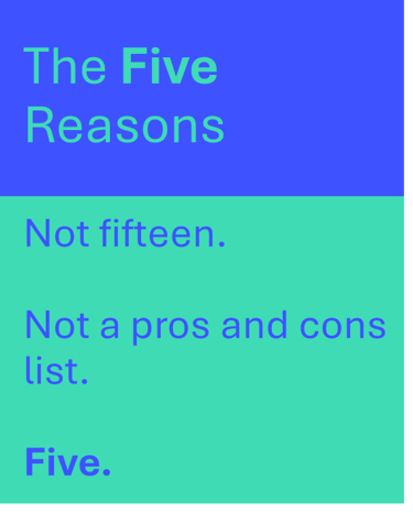 During a recent meeting with a valued client, he reminded me of something I’d worked on years ago, the Five Reasons Rule for decision making. I’d almost forgotten about it.